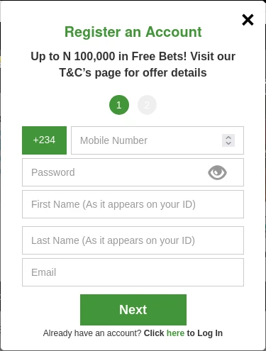 The sports betting company Betway, offers free registration for all players from Nigeria. Players can register simply using their phone number.